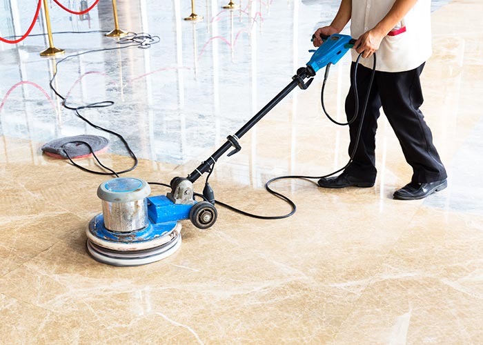 - Lavage mécanique des sols : monobrosse ou autolaveuse selon la surface
